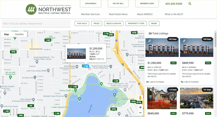 in 1996, NWMLS launched NWRealEstate.com, one of the first public-facing websites for consumers to access MLS listings. When clicking on the map, a list of properties came up that showed all of the public-facing listing information, including one photo of the home.