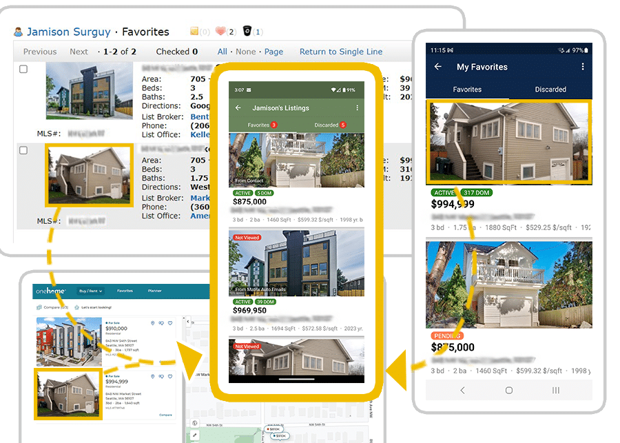 The Northwest MLS Mobile App makes it easy for brokers and their clients to collaborate. When you mark a listing as a favorite in the OneHome client portal, or within the mobile app, it will automatically appear on both platforms for you and your broker. This makes it easy to keep track of all “liked” properties and conveniently communicate with your broker about your favorite properties, directly through the app.