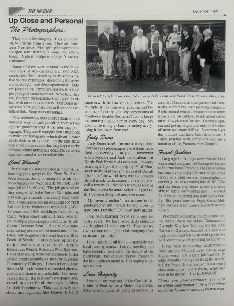 As digital cameras became more affordable, it was much easier for brokers to obtain their own listing photos. While NWMLS continued to provide complimentary primary photos, brokers were able to email up to five additional .jpeg images to the Listing Input Department, who would upload the photos to their listing.
