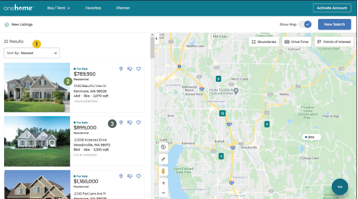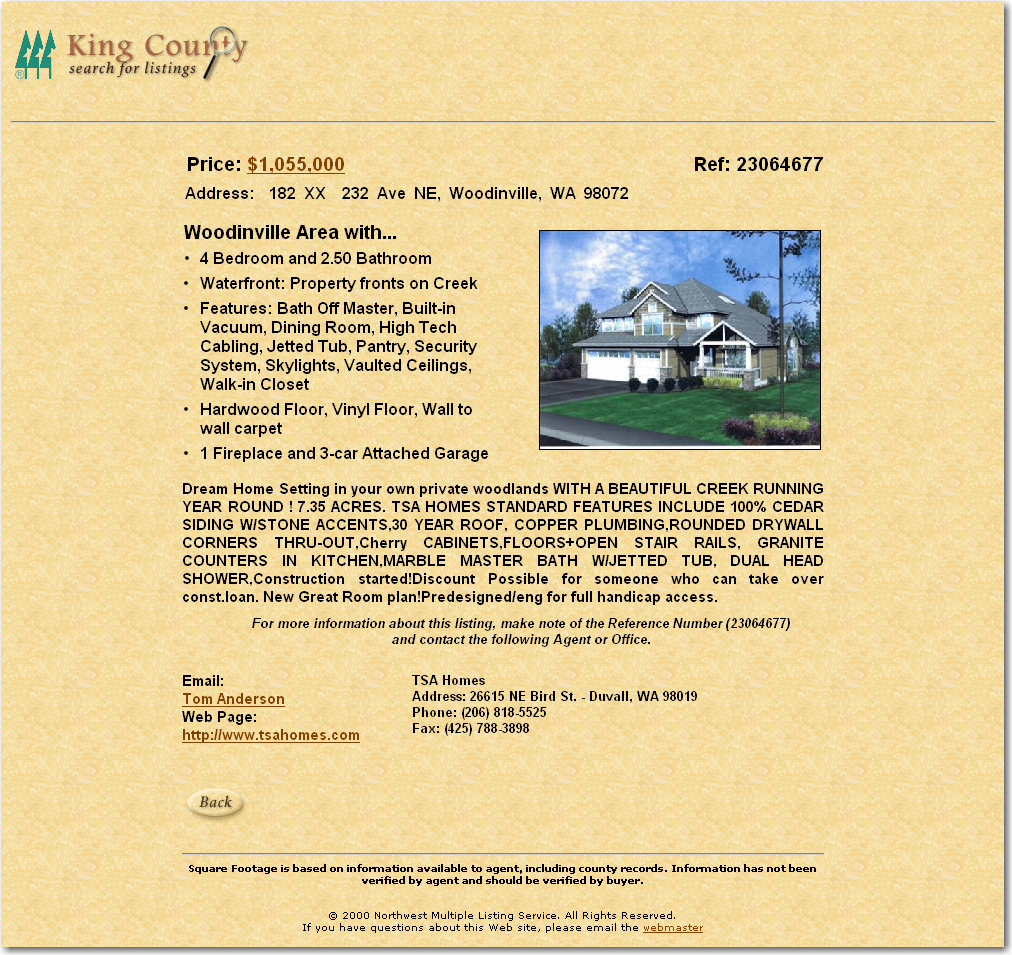 in 1996, NWMLS launched NWRealEstate.com, one of the first public-facing websites for consumers to access MLS listings. When clicking on the map, a list of properties came up that showed all of the public-facing listing information, including one photo of the home.