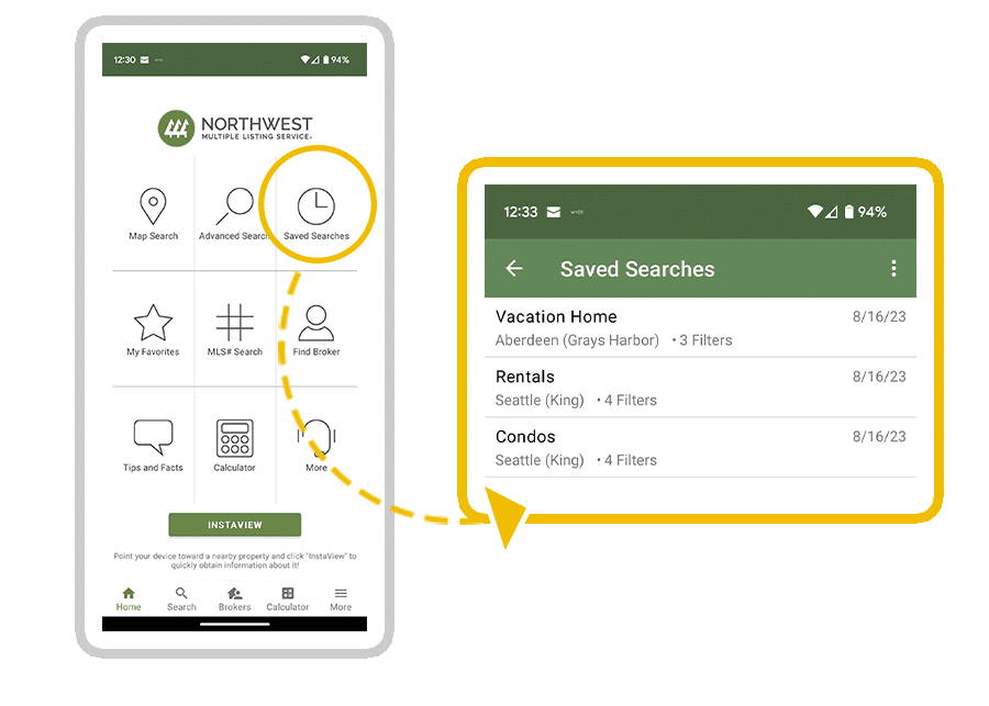 The Northwest Mobile App gives NWMLS brokers a huge advantage when helping clients in their real estate journey, with instant access to contact information, saved searches, and recent activities, all from the convenience of their phone or mobile device.